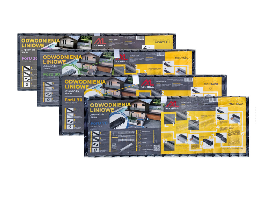 - 12 metrów odwodnień ForU70 z ocynkowanym rusztem klasy A15 montowanym na „KLIK” (bez śrub)